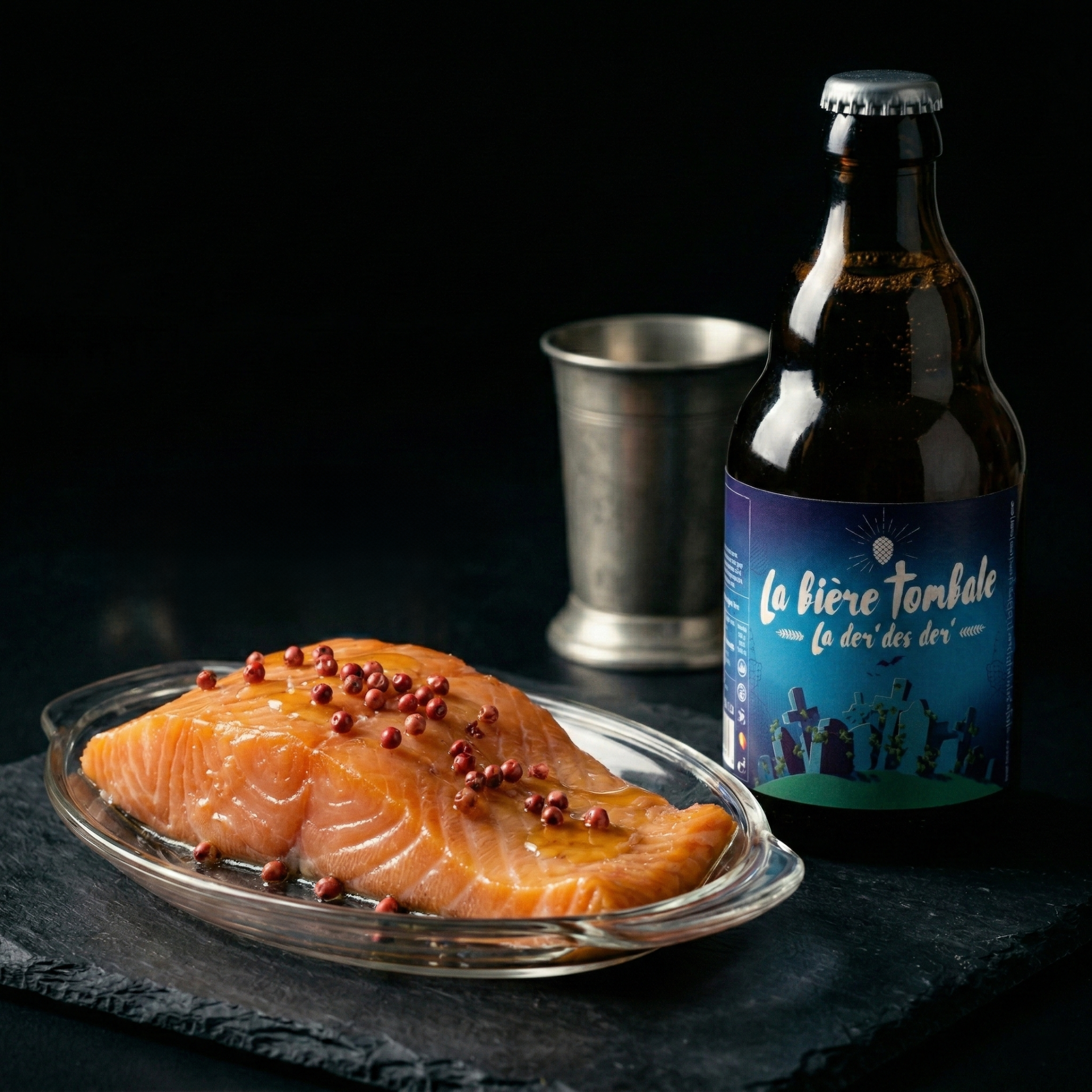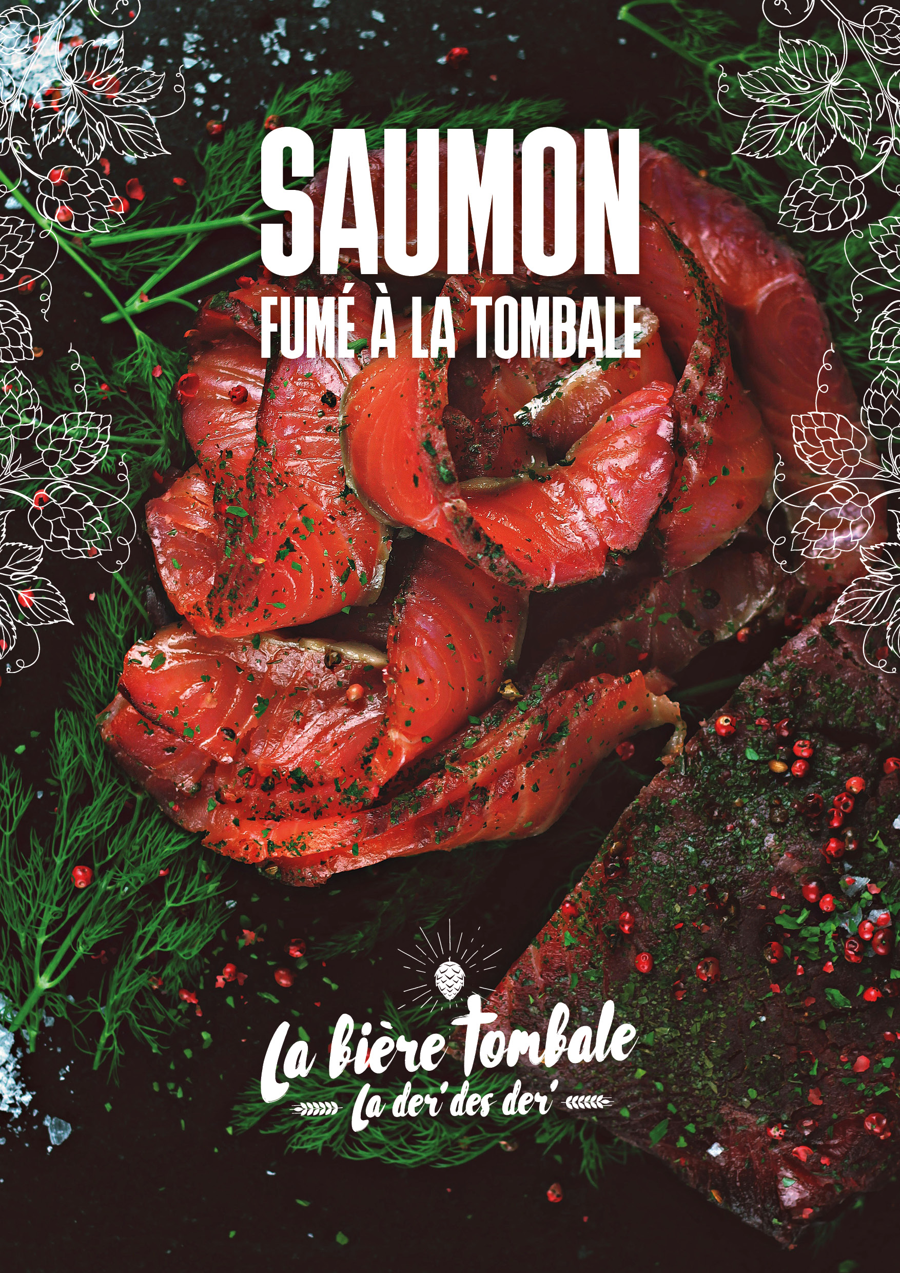 Création d’une affiche promotionnelle afin de mettre en valeur un produit original : un saumon fumé à la Bière Tombale, création culinaire réalisé par la poissonnerie artisanale La Perle du Nord.